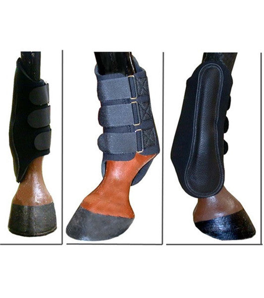 Padded splint boots made of durable neoprene with suede padding over vulnerable splint area.