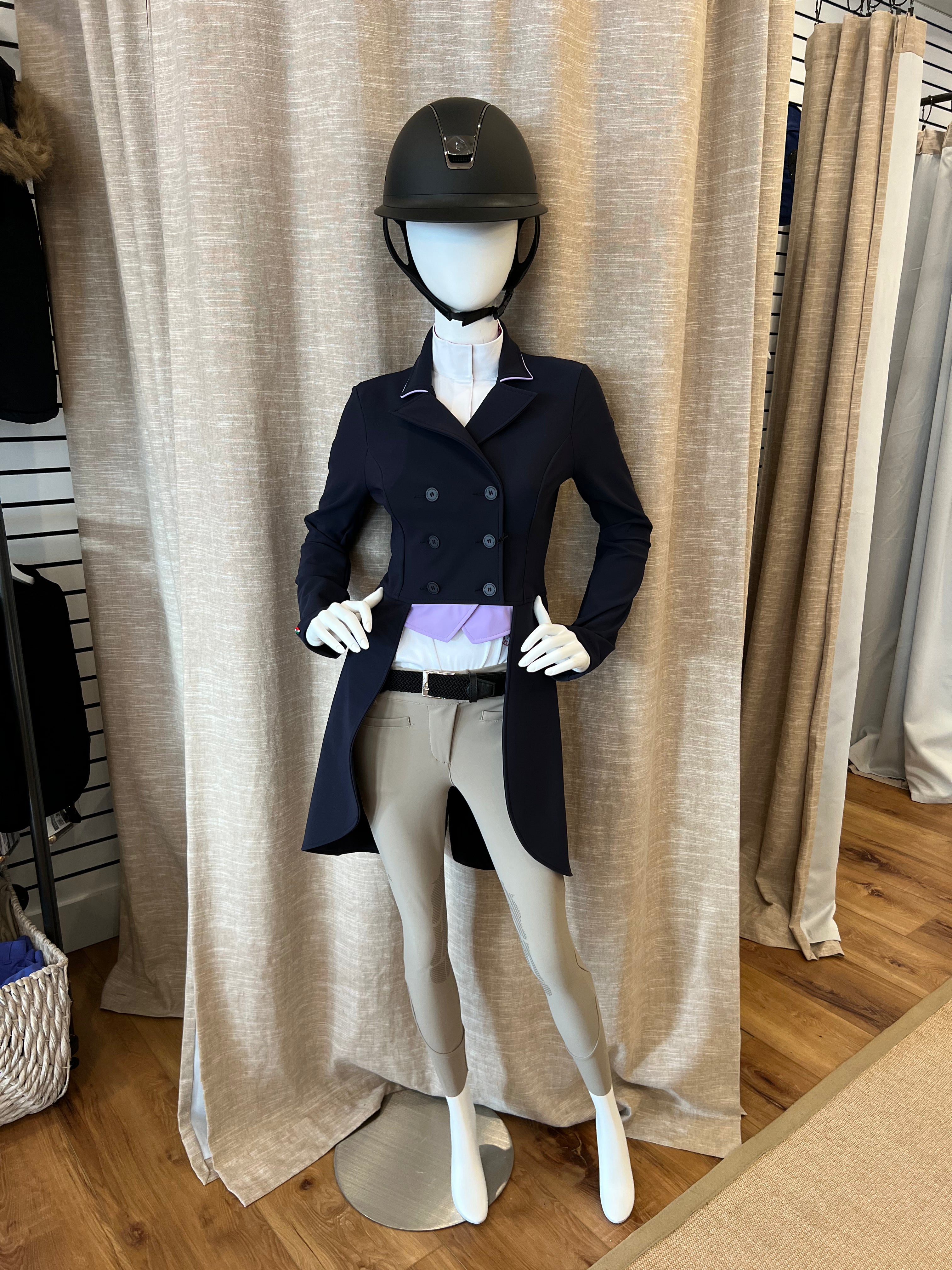 Fashion meets function in this exquisitely designed dressage tailcoat from For Horses® Italia. The high-performance fabric is extremely lightweight and breathable, allowing you to stay cool and comfortable whatever the weather. Elegant and understated, the Jenni Tailcoat features contrast piping around the collar and pockets and "FH" logo on the shoulder.